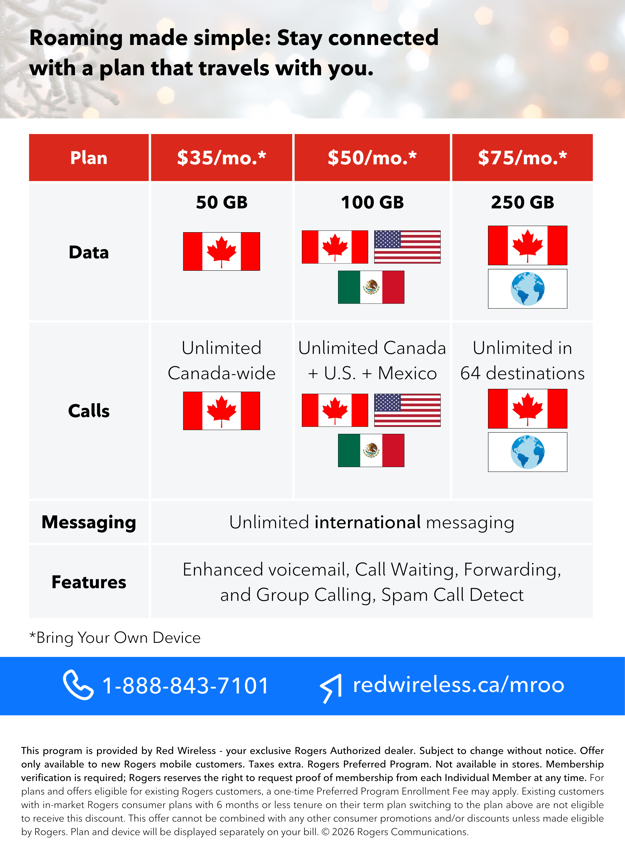 Visit: redwireless.ca/mroo or at call 1-888-843-7101.
